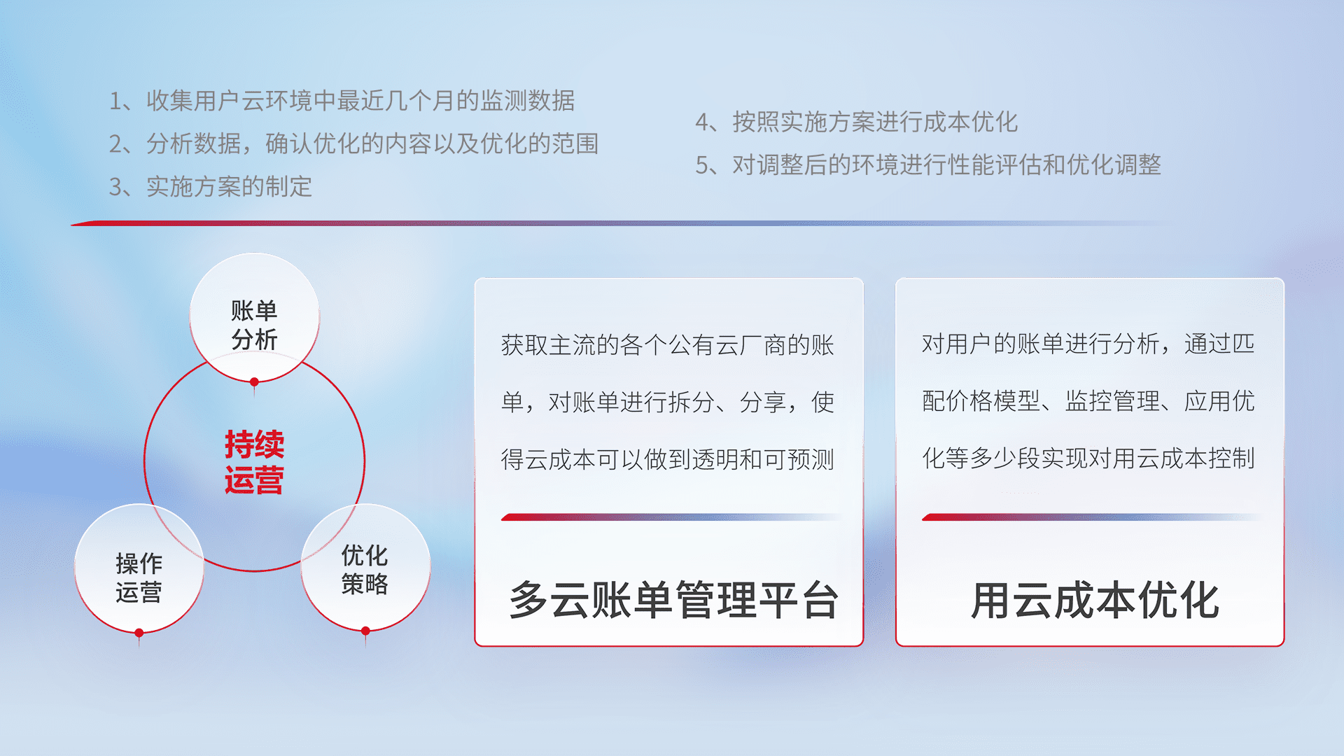监控业务系统资源开销,,,,对资源的消耗精确计量,,实现费用的透明化管理,,,,不断提升资源使用率,,,调整资源购买方式,,,降低资源费用成本,,用云成本可预测、、、用云费用可优化,,,云资源配额有据可依。。。
